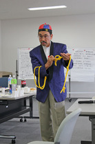 当日は、受講生約70人が参加され、有志による様々な出し物がありました。はじめに、二胡の演奏があり、参加者も一緒に月亮代表我的心(我が心は月のごとく)を歌いました。次に中級クラス有志による歌、铁臂阿童木(鉄腕アトム)の披露がありました。三番目には、上級クラス有志による、全員参加のクイズ大会とマジック、最後には全員で、世界唯一的花(世界に一つだけの花)を合唱しました。このあと飛び入りで、副学院長の来日中のお嬢さんと受講生による二胡の演奏披露もあり、さまざまなミニイベントを堪能して、大いに盛り上がりました。